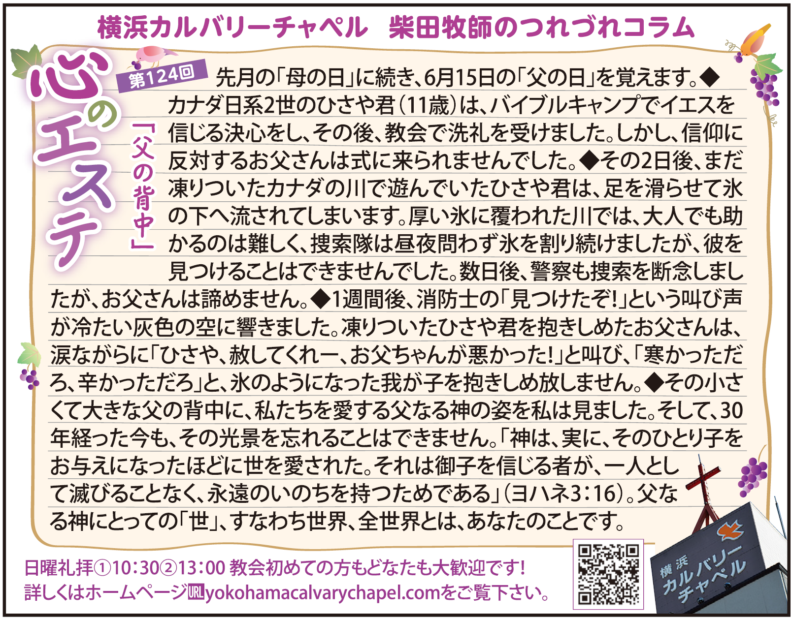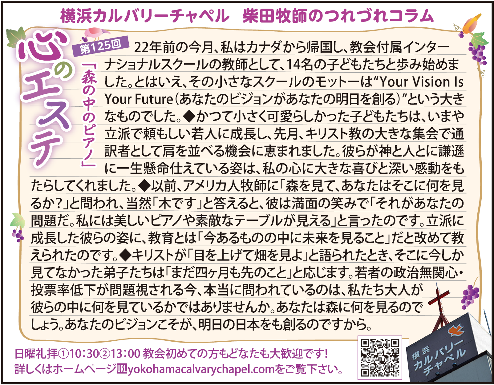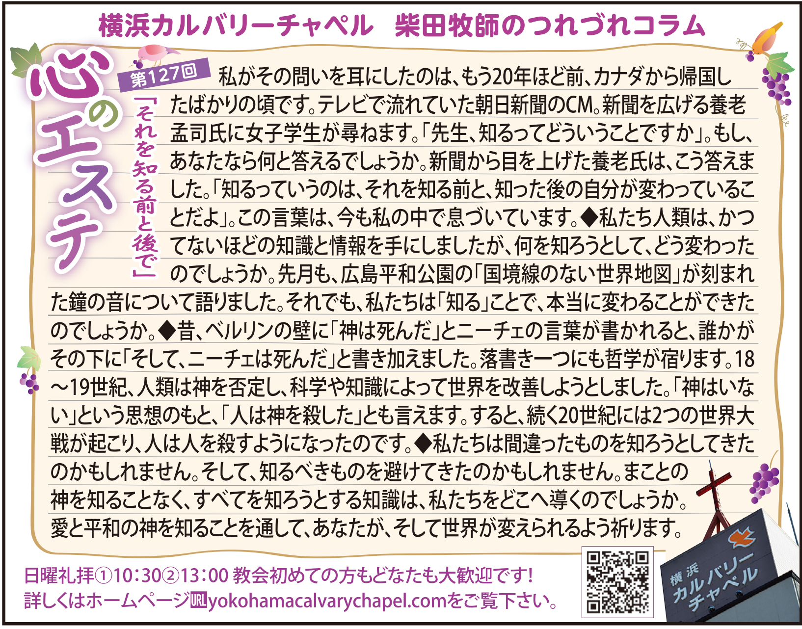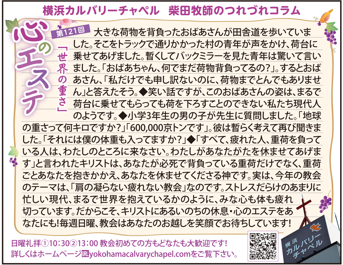 横浜市緑区の情報誌「タウンニュース」に月1回掲載されています柴田牧師のコラムです。