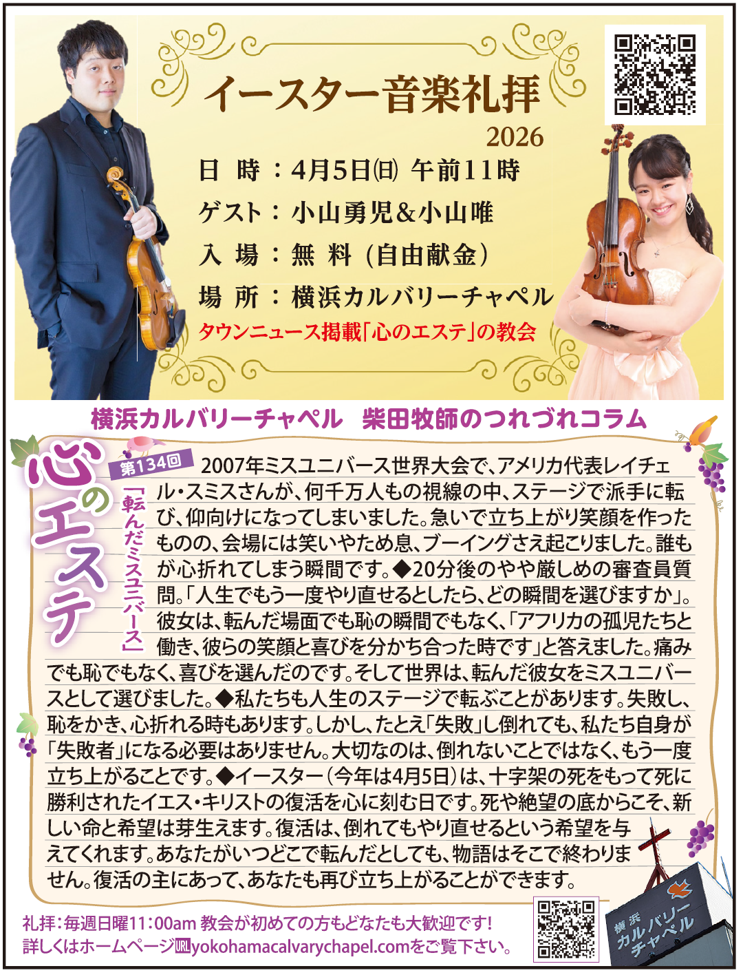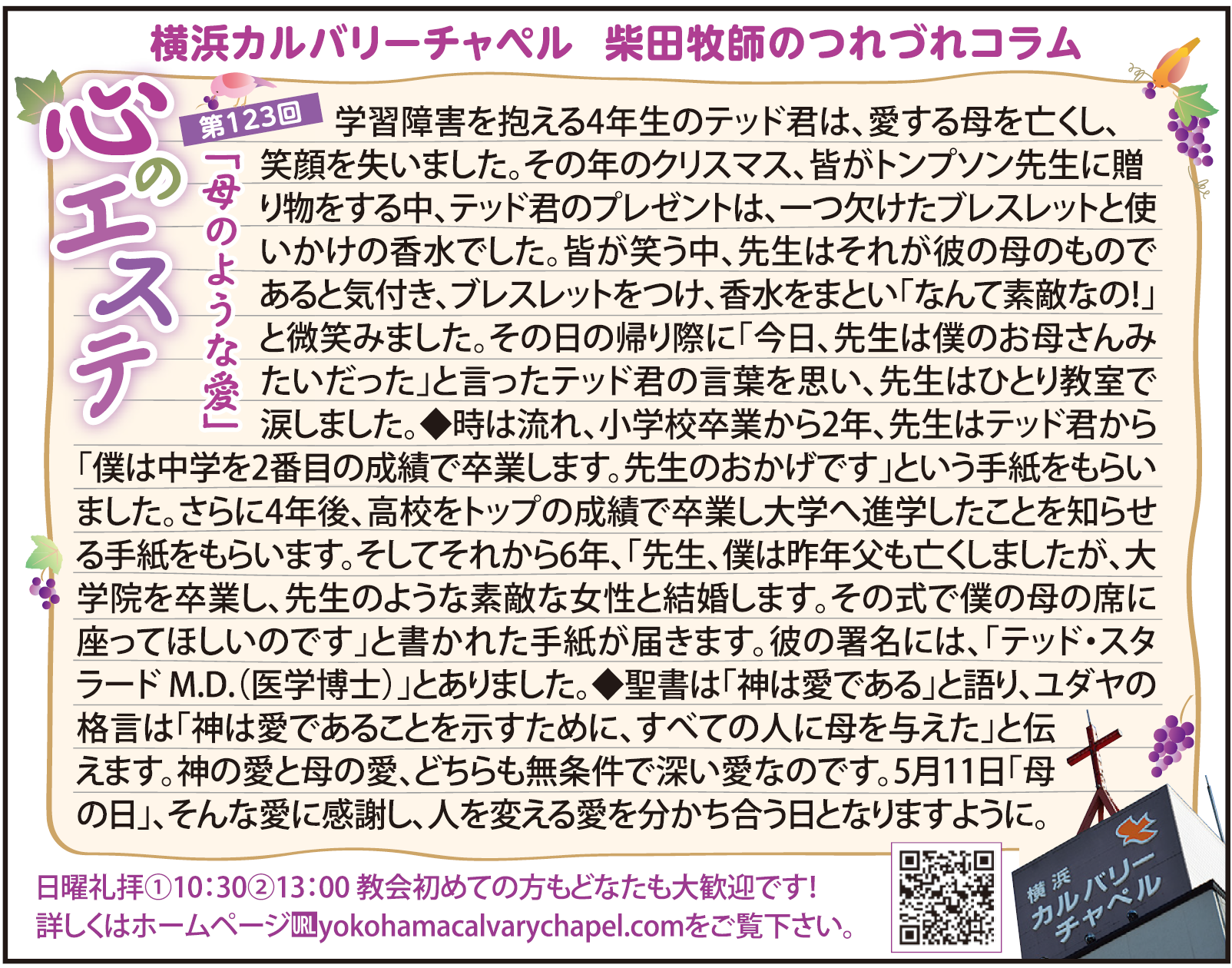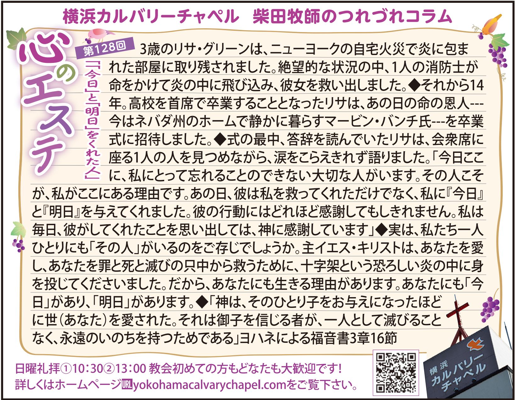 横浜市緑区の情報誌「タウンニュース」に月1回掲載されています柴田牧師のコラムです。
