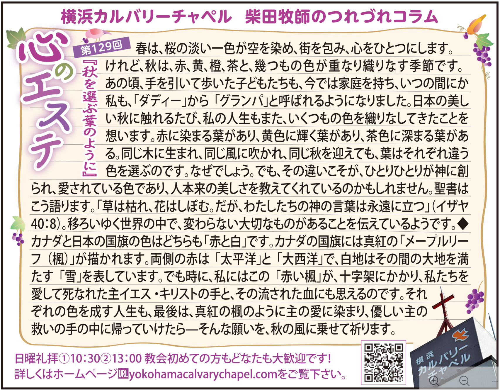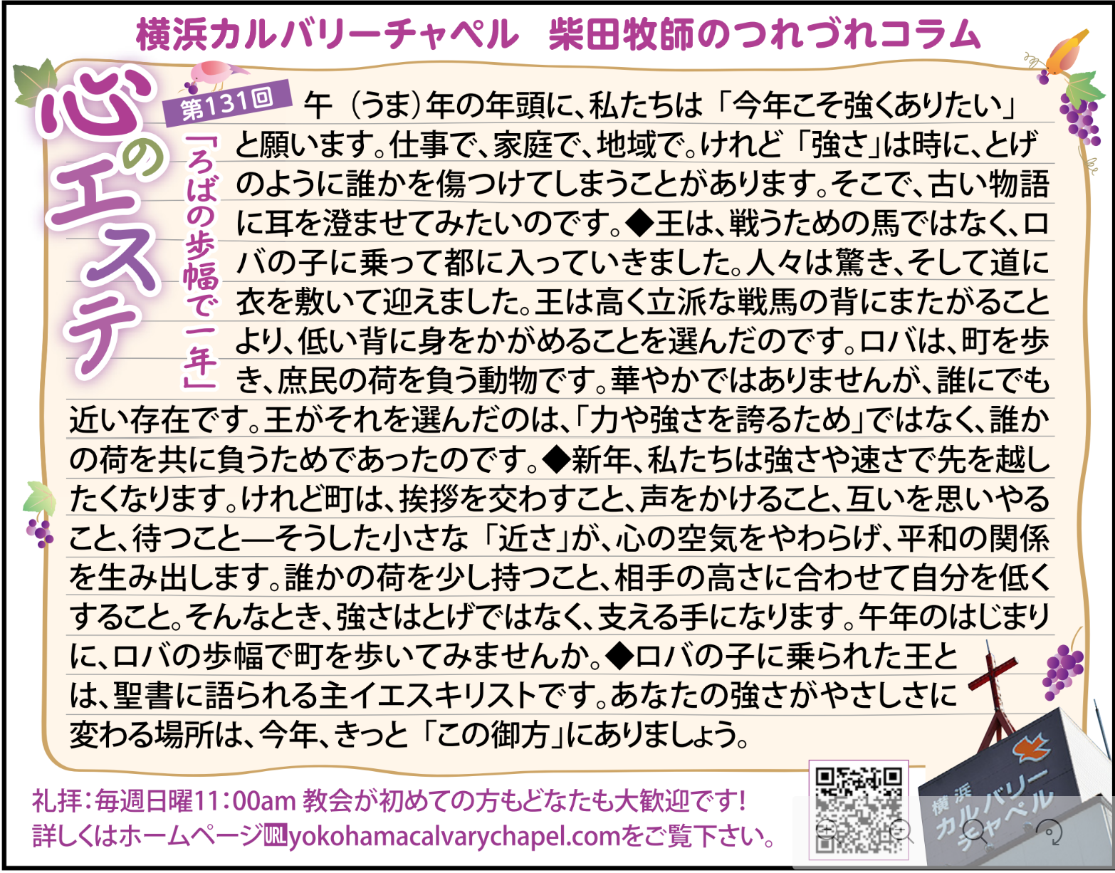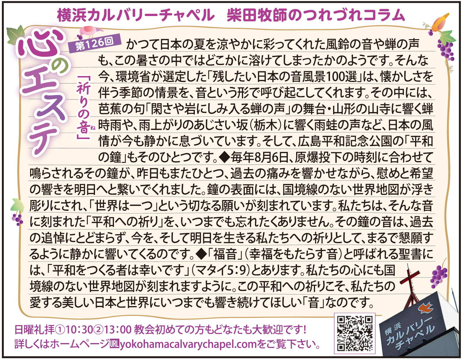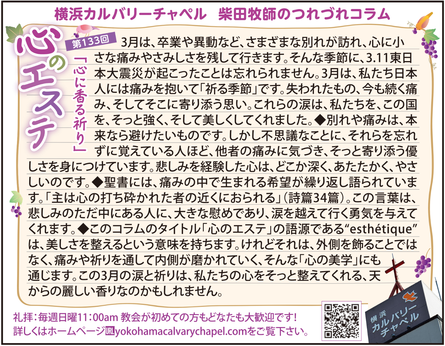 横浜市緑区の情報誌「タウンニュース」に月1回掲載されています柴田牧師のコラムです。