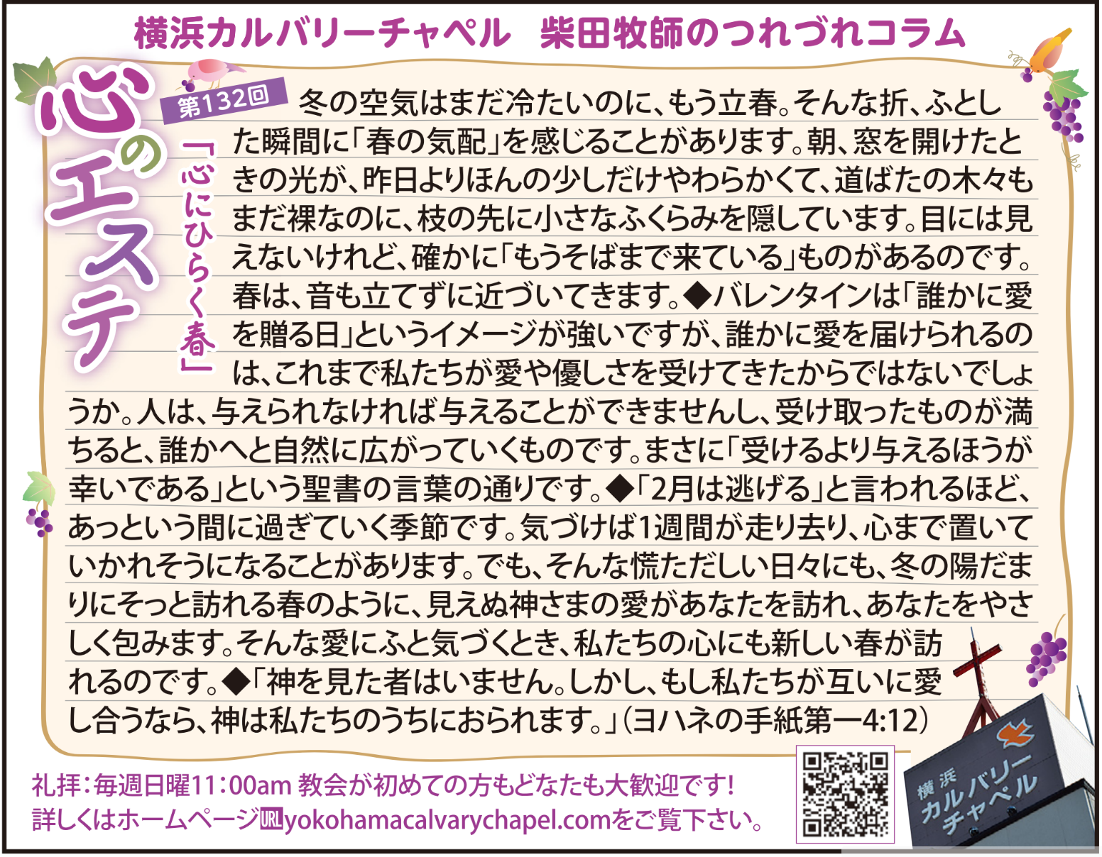 横浜市緑区の情報誌「タウンニュース」に月1回掲載されています柴田牧師のコラムです。