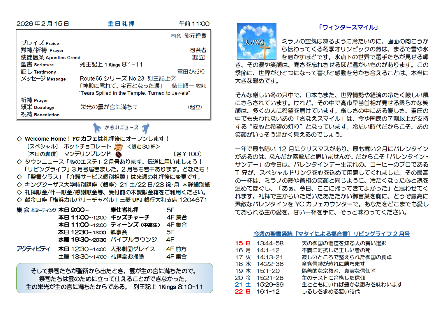 2月15日(日) 主日礼拝