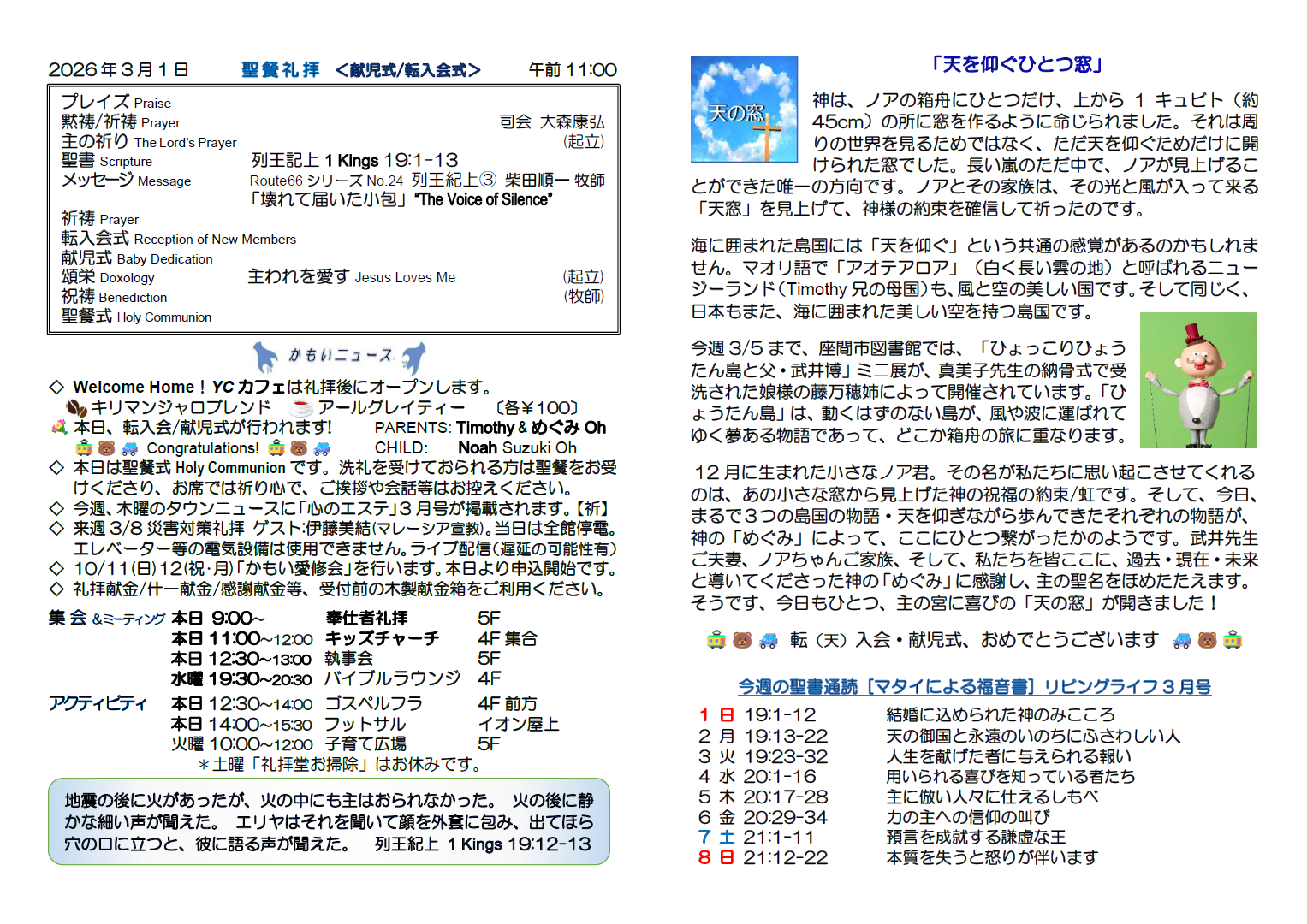 2月22日(日) 主日礼拝